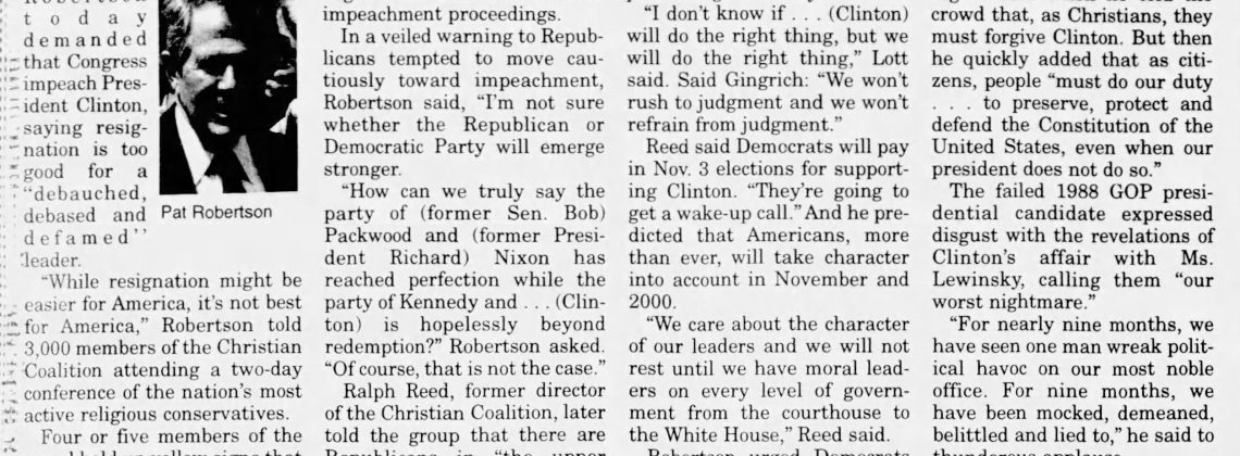 I ran across this Associated Press article about a Christian Coalition event in 1998. I was struck by a few lines: